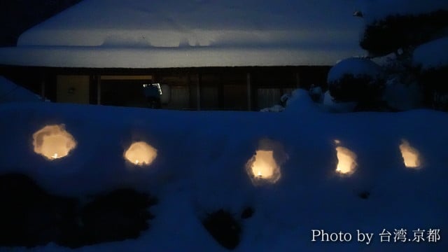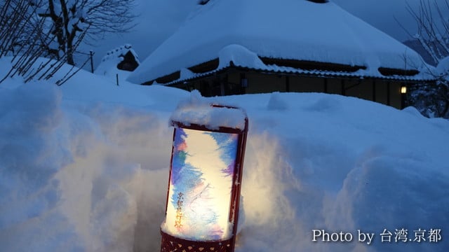 下午17:00天色漸漸暗了,民家也陸陸續續開始點燈,蜿蜒小徑四處分散著像這樣的小燈籠或是雪燈籠,幽靜又神秘的景色仿佛來到完全不同的世界,無法想像這裡距離京都市區竟然只要一個小時左右的車程。